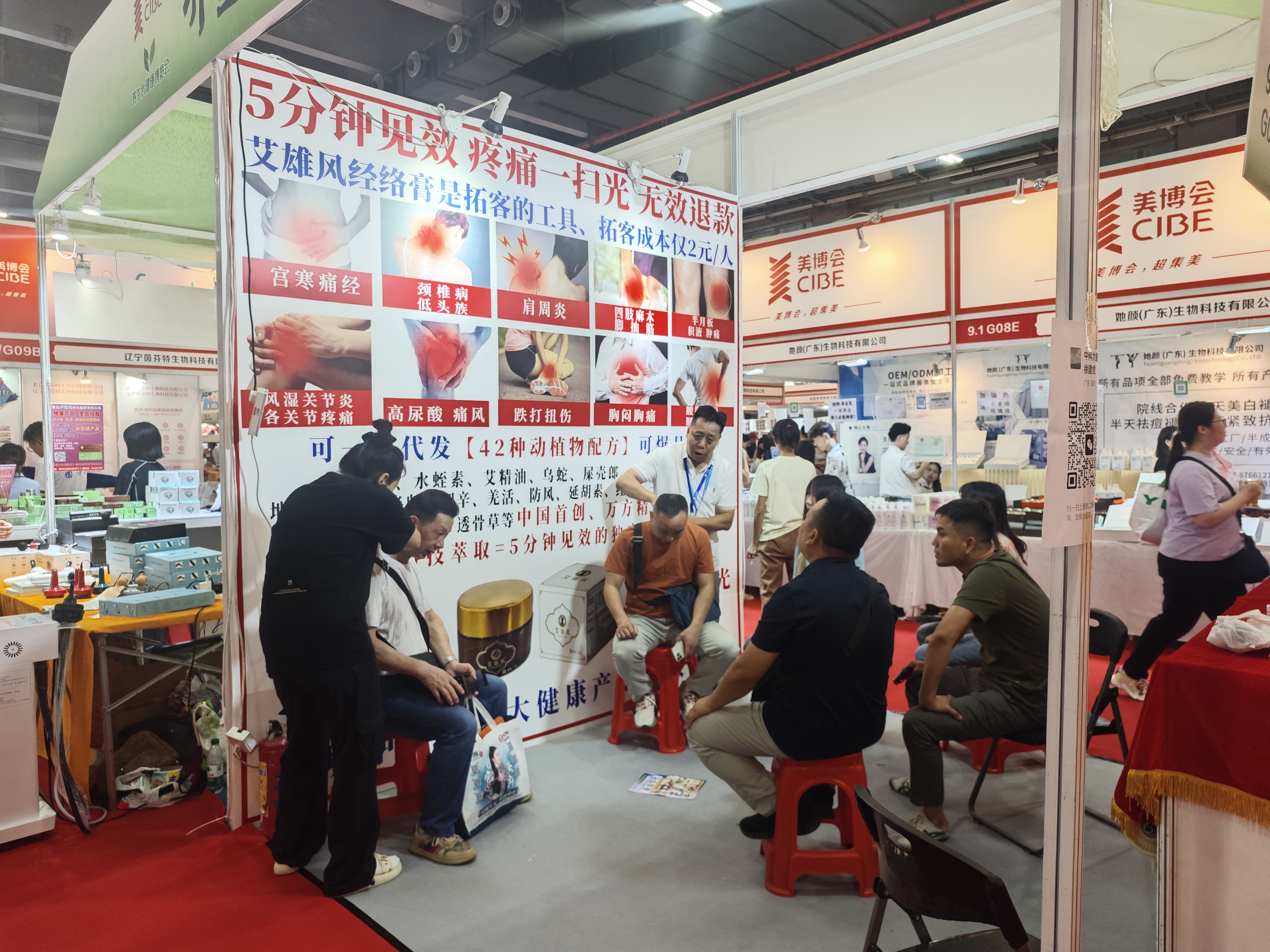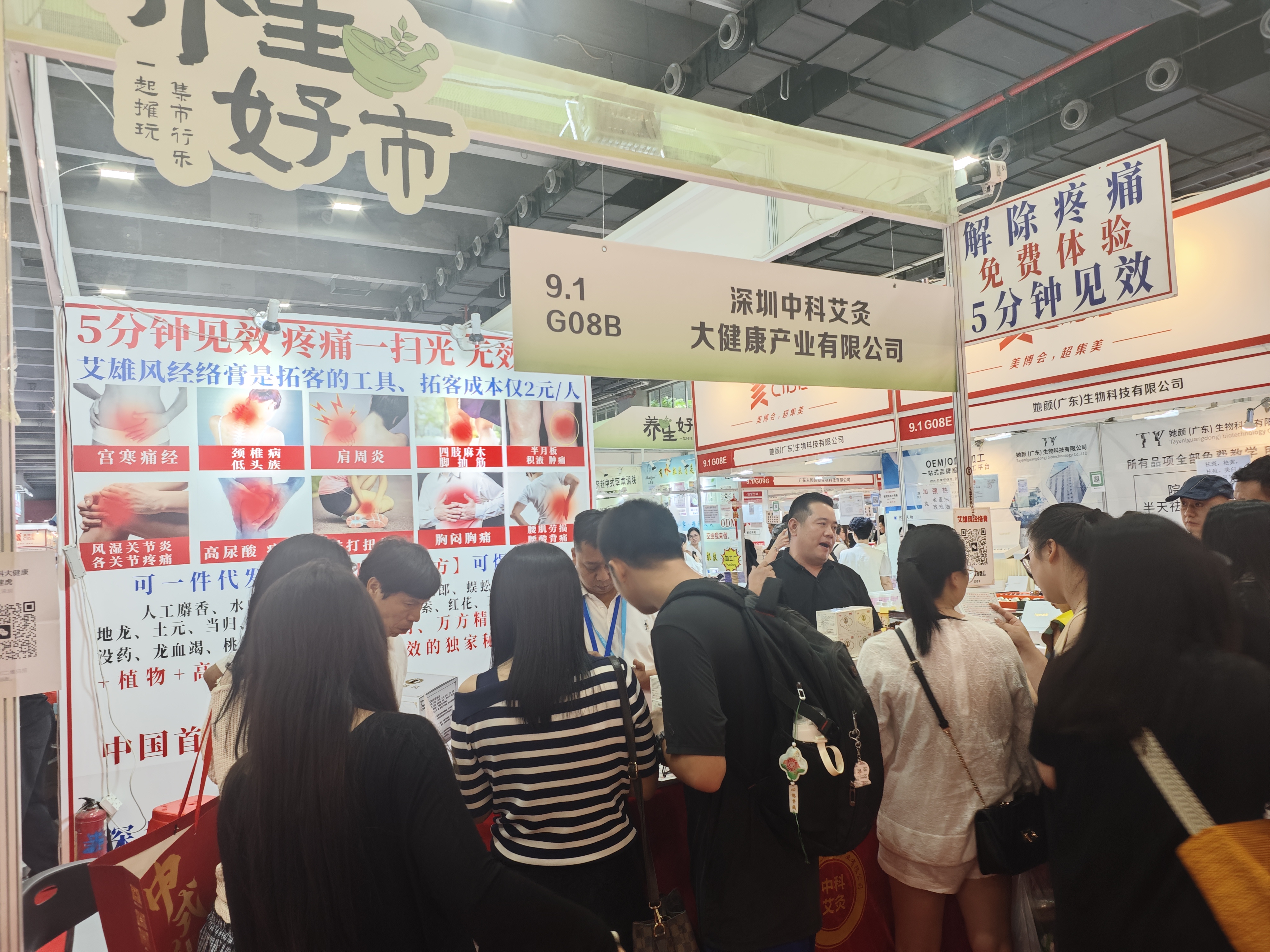 展會期間,深圳中科艾灸的展位人潮涌動,吸引了大量參展者駐足。其明星產品艾雄風經絡膏成為全場焦點,憑借獨特配方與卓越功效,贏得眾多體驗者的贊譽。